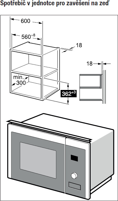 A beépítési méretek 38 × 56 × 55 cm, így a készülék könnyen beilleszthető a konyhabútorba.