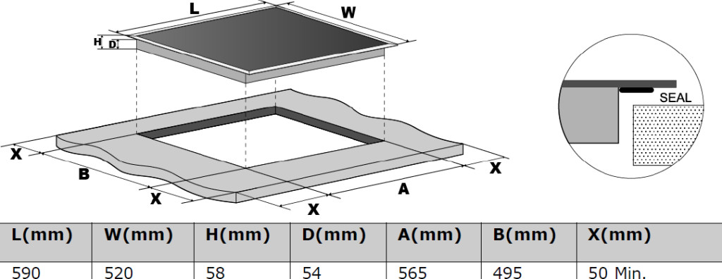 60 cm széles indukciós főzőlap; fekete üvegfelület egyenes csiszolt élekkel; érintésvezérlés Slider vezérléssel a teljesítmény beállításához; 9 teljesítményszint; 4 független főzőzóna: bal első 18 cm / 1,5 (2,0 Boost) kW, bal hátsó 16 cm / 1,2 (1,5 Boost) kW, jobb első 16 cm / 1,2 (1,5 Boost) kW, jobb hátsó 18 cm / 1,5 (2,1 Boost) kW; összteljesítmény: 7,0 kW; funkciók: olvasztás, kiolvasztás, melegen tartás és lassú főzés; Smart Pause; edényfelismerés; gyermekzár; automatikus biztonsági kikapcsolás; maradékhő-kijelző; időzítő automatikus kikapcsoláshoz vagy visszaszámlálóként, max. 99 perc; méretek (Ma×Sz×Mé): 5,8 × 59 × 52 cm.