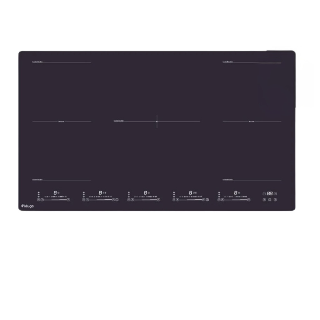 90 cm széles indukciós főzőlap, fekete üveg felület fehér LED háttérvilágítással, 5 zóna: bal első 19x19 cm (1,5/1,8/2,0 kW), j. első 19x19 cm (1,5/1,8/2,0 kW), b. hátsó 19x19 cm (2,0/2,4/2,8 kW), j. hátsó 19x19 cm (2,0/2,4/2,8 kW), középső 28 cm (2,3/3,0/3,3 kW), 9 teljesítménybeállítás - 2x Flexi zóna, többfunkciós slider vezérlés - Touch Control, 5 főzési funkció - Intelligens szüneteltetési funkció - Időzítő akár 99 perces beállítással, maradékhőkijelző - Gyerekzár - Edényfelismerés - Automatikus kikapcsolásvédelem, teljes teljesítményfelvétel: 9,0 kW, méretek (Ma x Szé x Mé): 6 x 90 x 52 cm