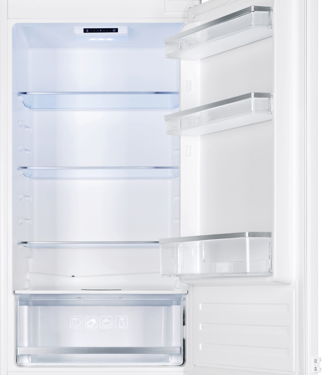 Hűtőszekrény-rész: térfogat 195 l; 1 fix és 3 állítható edzett üvegpolc; 2 fiók zöldség és gyümölcs számára; belső LED világítás; az ajtóban nagy palacktartó rekesz és 2 standard rekesz az élelmiszerek áttekinthető tárolásához; tojástartó.