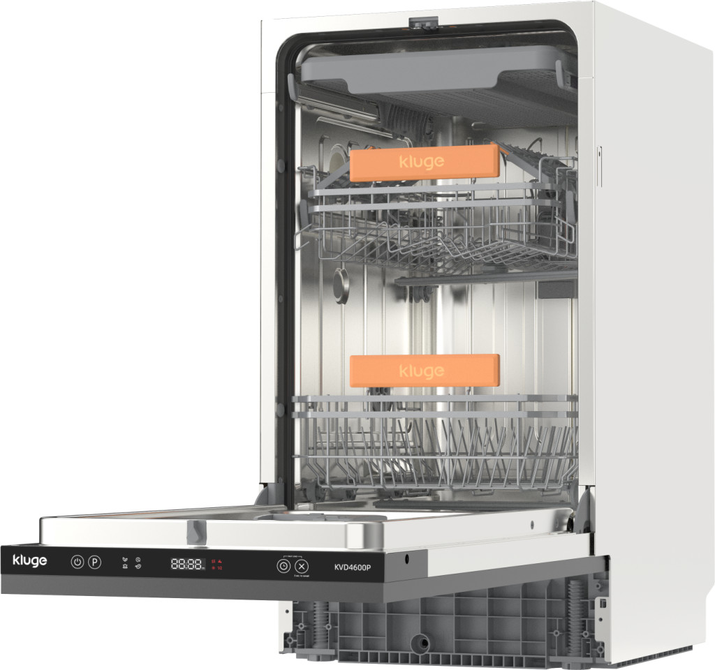 Teljesen beépíthető mosogatógép 11 teríték kapacitással és mindössze 45 cm szélességgel – ideális kisebb konyhákba; főbb jellemzők: 4 mosogatási program és 4 hőmérséklet; fehér LED kijelző érintésvezérléssel; inverter motor; indításkésleltetés 24 óráig; a belső elrendezés harmadik, felső evőeszköztartó fiókot és állítható felső kosarat kínál; a víz- és energia-megtakarítás érdekében választható csak felső, csak alsó vagy mindkét kosár mosogatása; lehajtható tányértartó tüskék az alsó kosárban; a dekorpanel fix rögzítésű; dekorajtó magassága 60–72 cm; zajszint 47 dB(A); energiaosztály D; energiafogyasztás 70 kWh / 100 ciklus, vízfogyasztás 9,8 l ciklusonként; méretek (Ma×Sz×Mé): 81,5–87,5 × 44,8 × 55 cm.