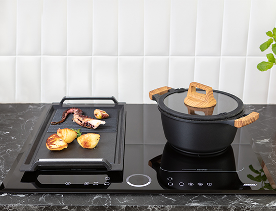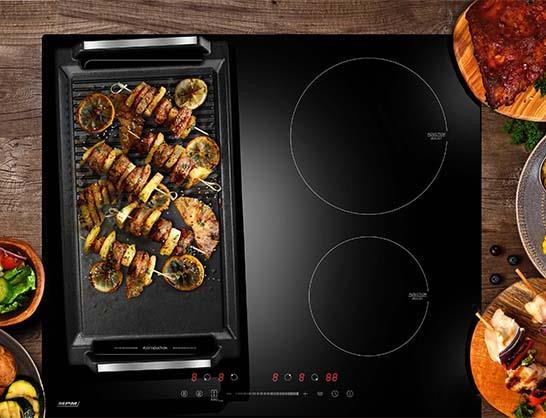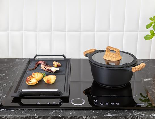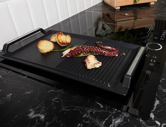 - A grill lap vastag aljjal rendelkezik, és részben bordázott felületű a tökéletes grillezéshez, részben sima felületű például tócsni vagy palacsinta sütéséhez.