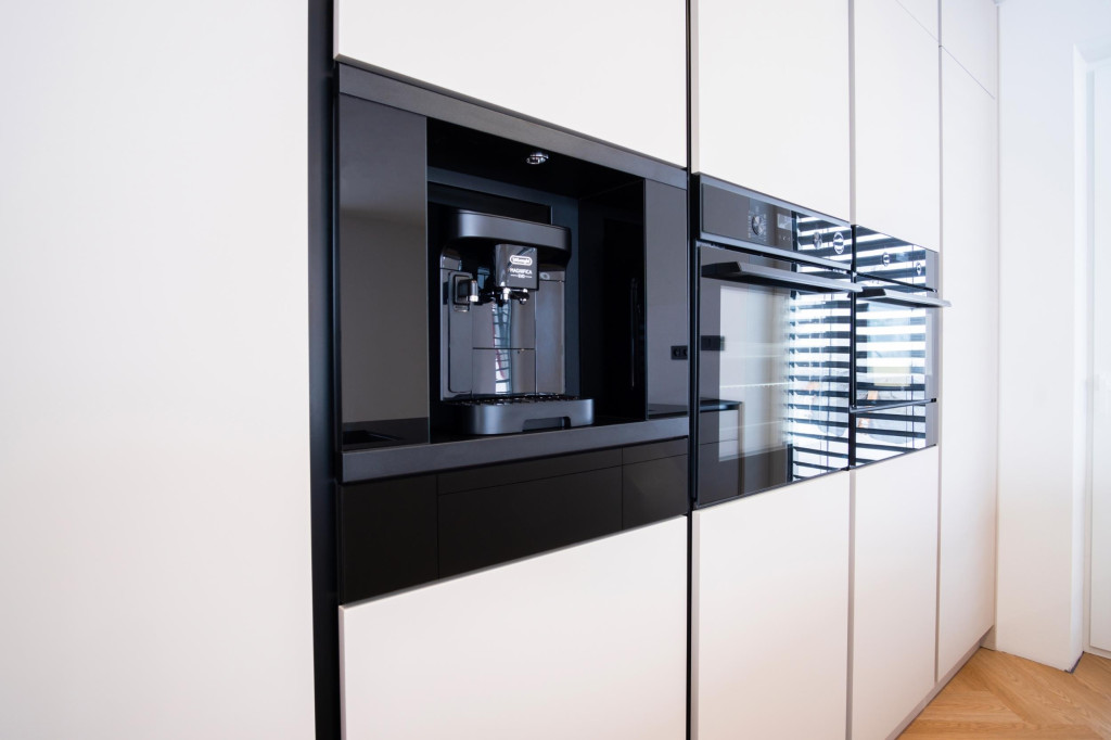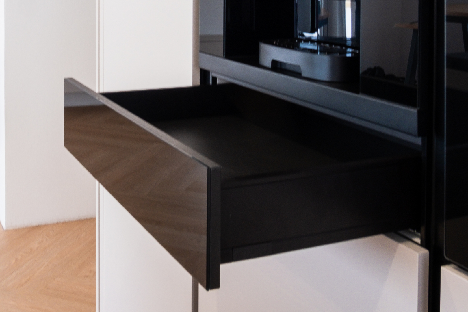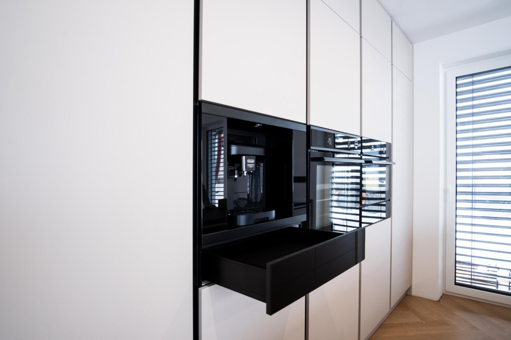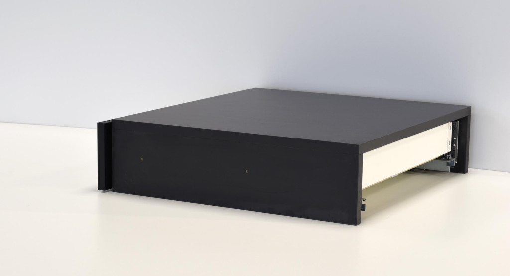 A beépíthető fiók praktikus és diszkrét nyitási megoldást kínál, fogantyú nélkül, Push & Pull rendszerrel. Ideális helyet biztosít konyhai kiegészítők, csészék, csészealjak, tálcák és más eszközök számára, így mindig minden kéznél lesz. A fiók kiváló minőségű teleszkópsínekkel van felszerelve, amelyek sima mozgást és hosszú élettartamot garantálnak.