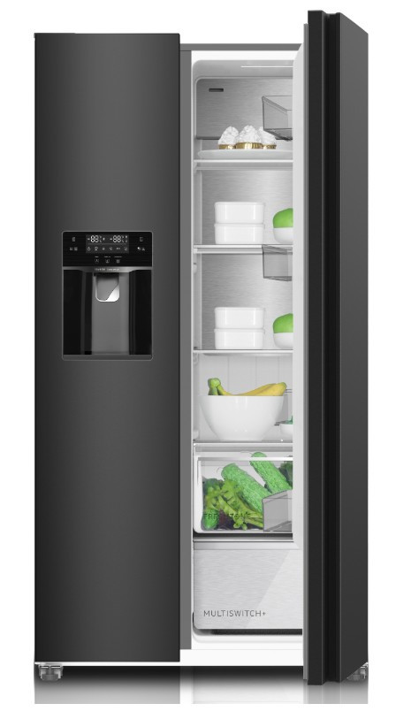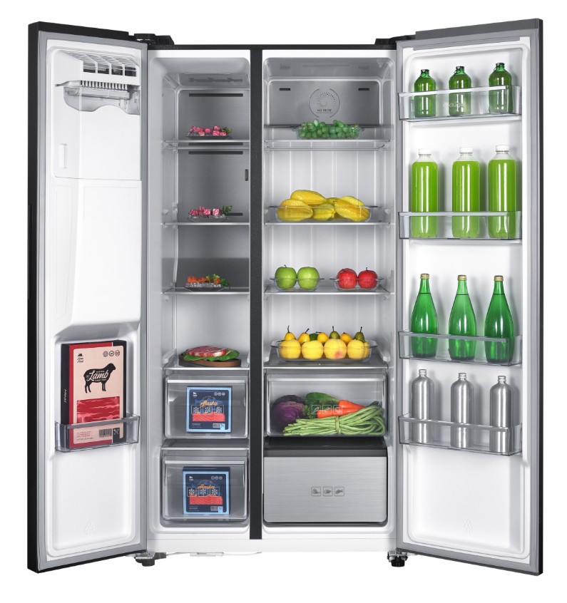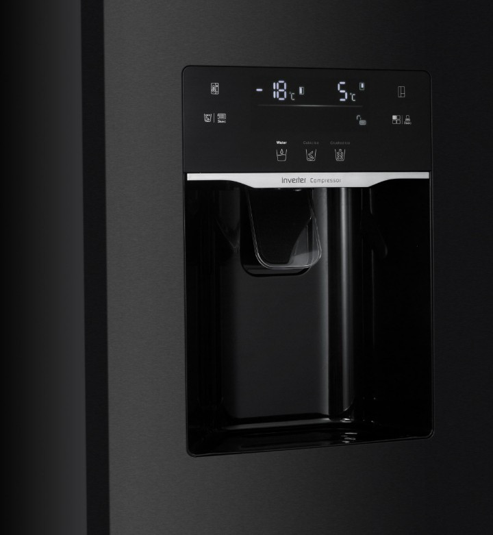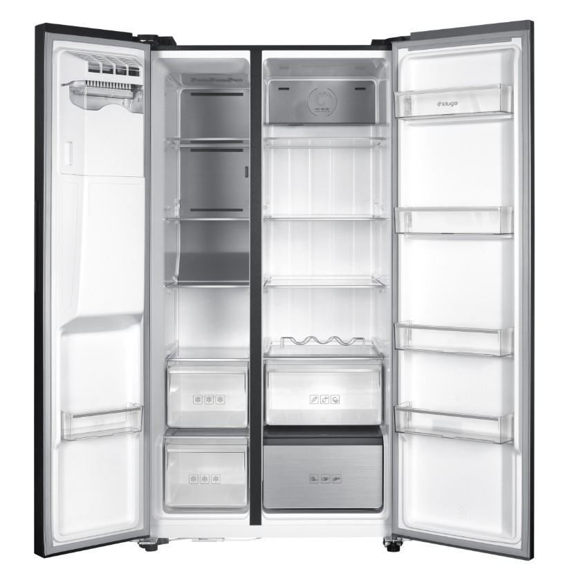 Szabadon álló, kétajtós kombinált hűtőszekrény, bal oldalon fagyasztóval, No Frost rendszer, fehér háttérvilágítású kijelző, hűtőszekrény/fagyasztó nettó térfogata: 337 l/240 l, hűtött víz és jégadagoló (kockák vagy zúzott jég) az ajtóban, vízcsatlakozás szűrővel, belső LED-világítás, Inverter motor, funkciók ECO, nyaralás, szuperfagyasztás, kijelzőzár, hűtőszekrény: 4 üvegpolc, zöldségfiók, flexi zóna, 4 rekesz az ajtóban, fagyasztó: 4 üvegpolc, 2 fiók, rekesz az ajtóban, fagyasztókapacitás 13 kg/24 óra, áramkimaradás esetén akár 7 órás áthidalási idő, D energiaosztály, éves energiafogyasztás: 270 kWh, zajszint 39 dB(A), méretek (Ma × Szé × Mé): 177 x 91 x 73 cm Termékinformációs adatlap: https://www.elmaxstore.eu/files/KCSN577LD_man_CS_SK_PL.pdf