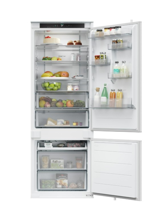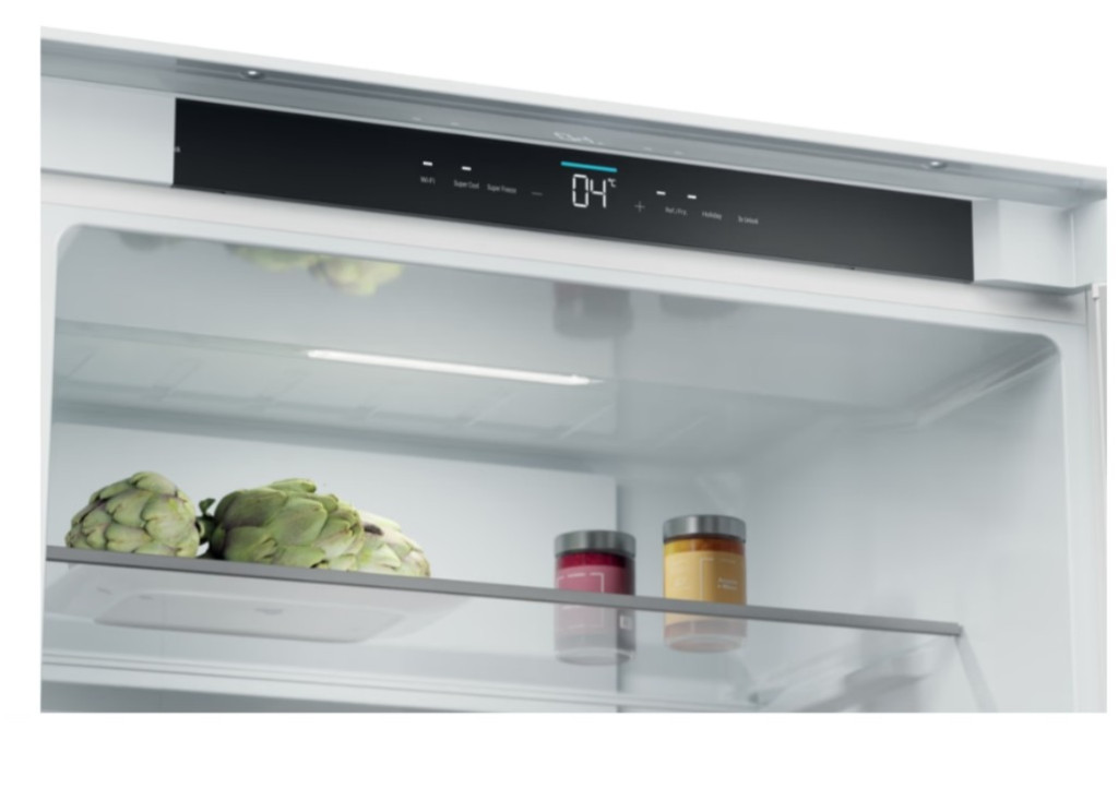 Beépíthető kombinált hűtőszekrény alul fagyasztóval, Total No Frost rendszer, hűtőszekrény/fagyasztó nettó térfogata: 281 L / 101 L, páratartalom zóna, érintőképernyős kijelző, beépítési sínek a konyhaszekrénybe, belső LED világítás, elektronikus hőmérsékletszabályozás, extra funkciók: Holiday, SmartCool - Intelligens hűtés, gyorshűtés, fagyasztókapacitás 8 kg/24 óra - Gyorsfagyasztási idő 8 óra, D energiaosztály, zajszint 33 dB(A), éves energiafogyasztás: 216 kWh, méretek (Ma x Szé x Mé): 193,5 x 69 x 55 cm Termékinformációs adatlap: https://www.elmaxstore.eu/files/KCN2382J_IL_CS.pdf