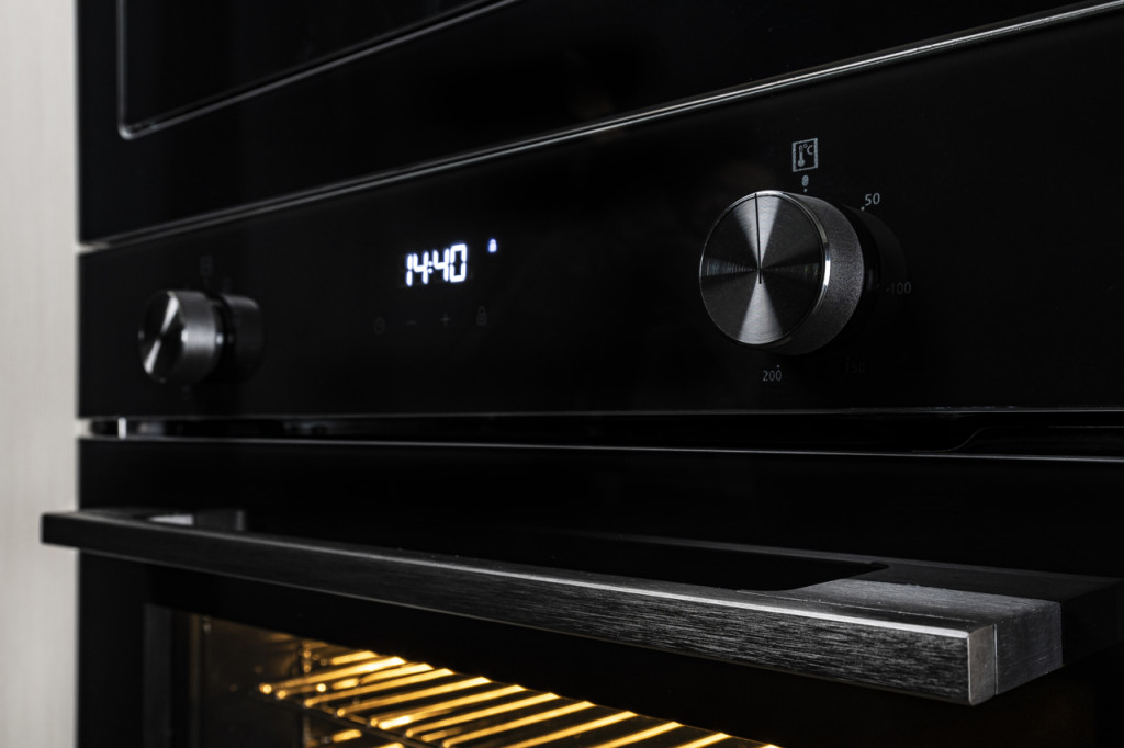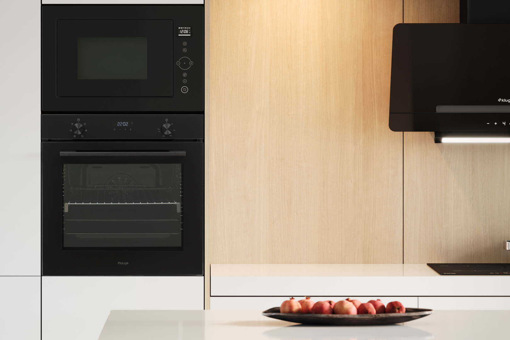 A Kluge KTE1020B multifunkciós légkeveréses sütő remek kiegészítője bármely modern konyhának. 75 literes űrtartalma elegendő helyet biztosít nagyobb adagok elkészítéséhez is, miközben A energiaosztálya gazdaságos működést garantál. Elegáns, fekete üveget és fekete kezelőszerveket kombináló kialakítása nemcsak praktikus, hanem esztétikus eleme is a konyhának. A jól olvasható, fehér LED kijelző modern és kifinomult megjelenést kölcsönöz a készüléknek.